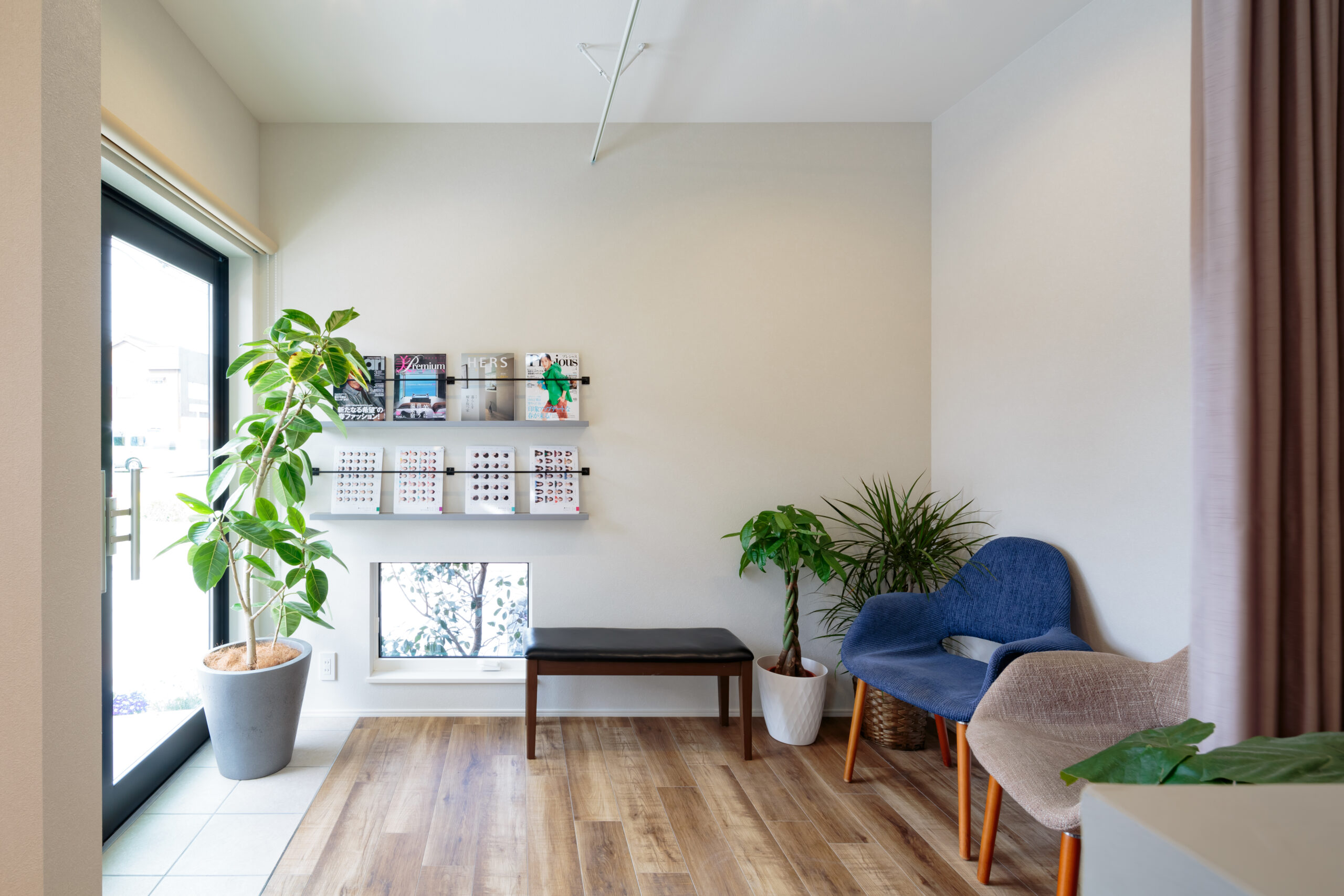 足元からの自然光を効果的に取り入れ、来店されたお客様がリラックスして過ごせる空間を演出しています。
